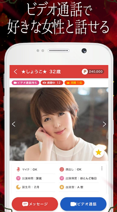 主婦・人妻、特に魅力的な女性はこのアプリ以外に用事が無いということはなく、いつでも都合よくビデオ通話できるわけではありませんが、メッセージで待ち合わせをすればデートの約束ができますね。旦那に内緒のビデオ通話で逢瀬を重ねる…合法不倫を存分に楽しみましょう。