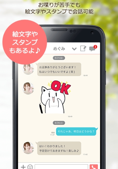 ラインのような絵文字やスタンプでコミュニケーションできるから、慣れるまではメッセでOK!もちろん慣れたらビデオ通話を試して下さい。きっとドキドキな恋が始まります!